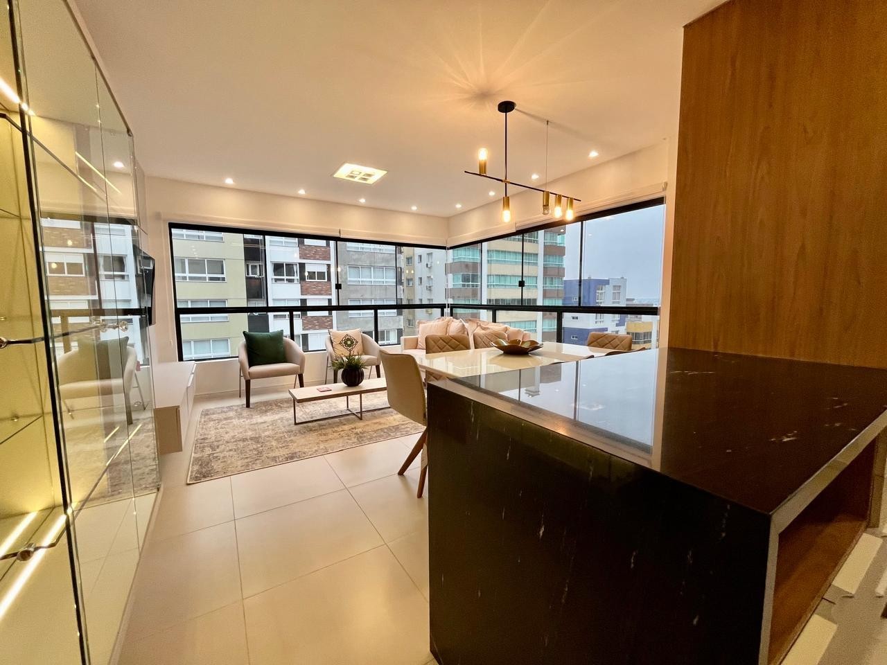 Impecável apartamento de 3 dormitórios, sendo uma suíte, com banheiro social e cozinha americana. O amplo e aconchegante living, em 2 ambientes, é integrado à sacada de frente, que oferece uma vista livre e definida. O imóvel é finamente mobiliado e decorado, com acabamento de alto padrão.