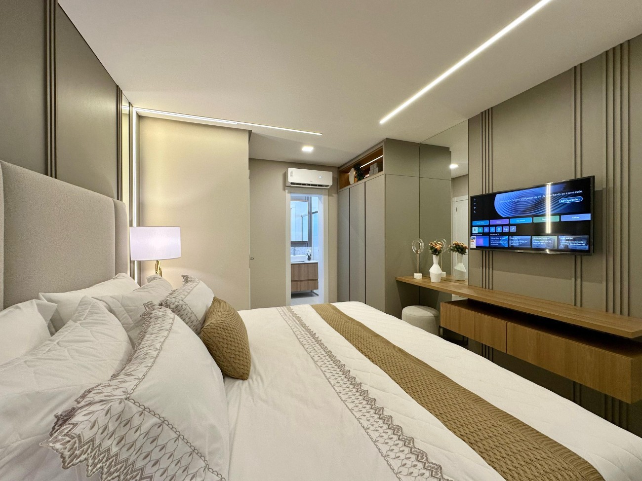 A cozinha americana integrada à sala de jantar e estar proporciona um espaço moderno e aconchegante. A sacada de frente oferece uma vista incrível, e a churrasqueira é ideal para os seus momentos de lazer. Totalmente mobiliado e decorado, o imóvel conta com excelente posição solar e está em uma localização privilegiada.