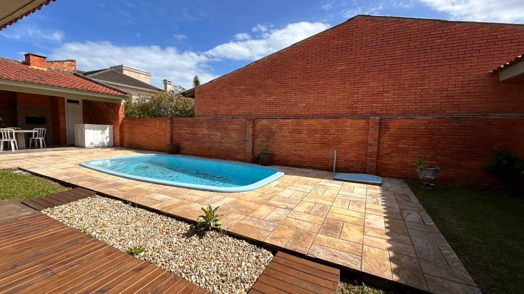 Oportunidade imperdível! Casa térrea em Atlântida, divisa com Capão da Canoa, com 281m² de área construída em um terreno de 16,5x36 metros. Com 5 dormitórios, living com 4 ambientes, garagem fechada para 3 carros, quiosque, piscina e amplo pátio na frente e nos fundos, este imóvel é ideal para quem busca espaço e conforto.