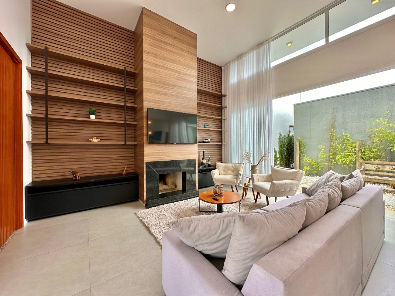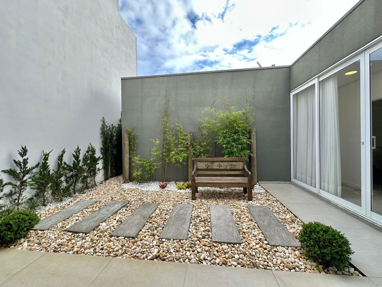 Com excelente iluminação natural e paisagismo cuidadosamente planejado, a casa é totalmente mobiliada e decorada com requinte. Para maior eficiência e sustentabilidade, o imóvel está equipado com sistema de energia solar.