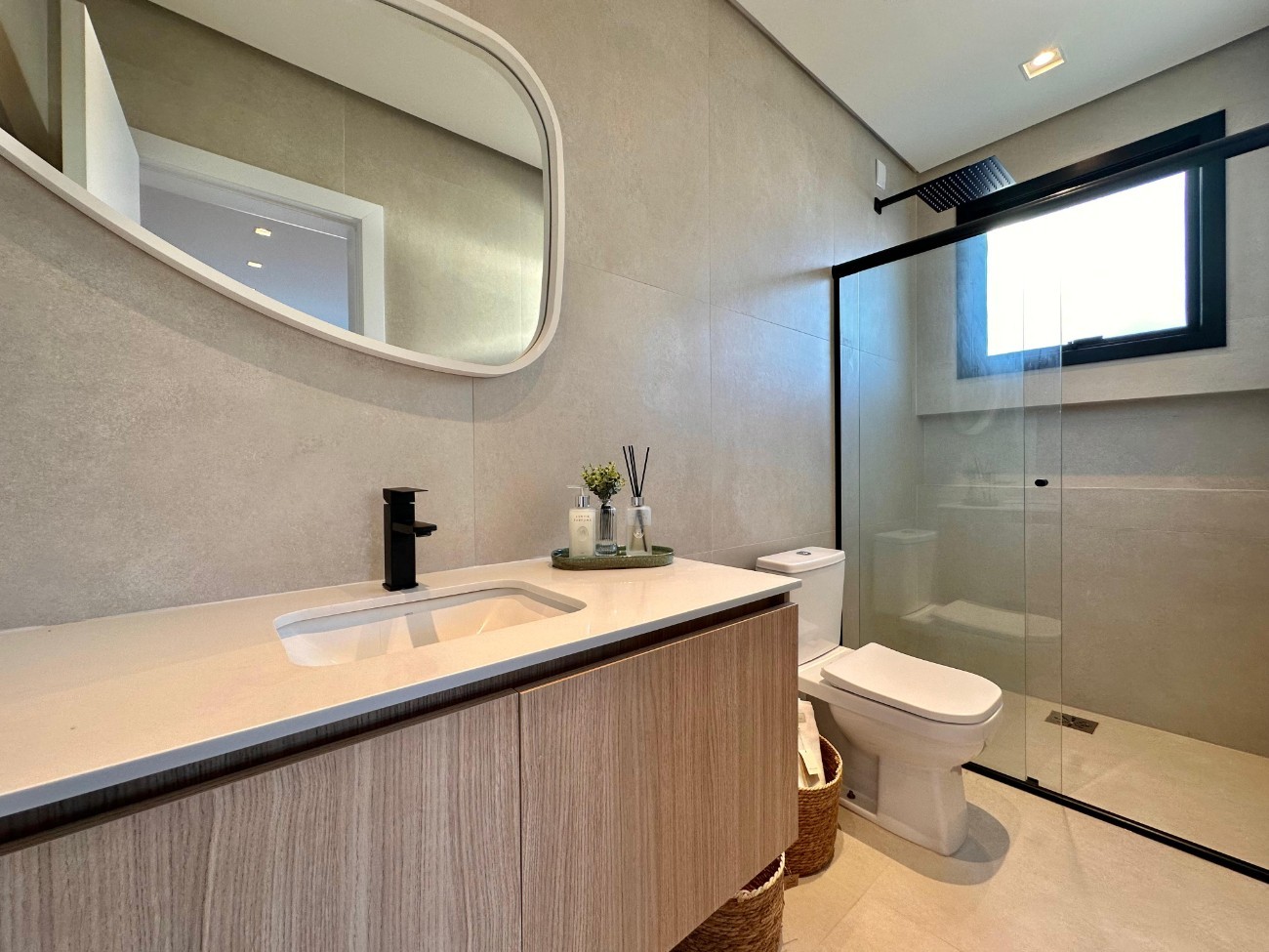 As esquadrias pretas e os acabamentos de alto padrão reforçam a elegância do imóvel, que está finamente mobiliado e decorado — pronto para morar. Uma casa completa, que alia design, funcionalidade e localização privilegiada, dentro de um condomínio com infraestrutura completa de lazer e segurança. Ideal para quem busca qualidade de vida com estilo no litoral.