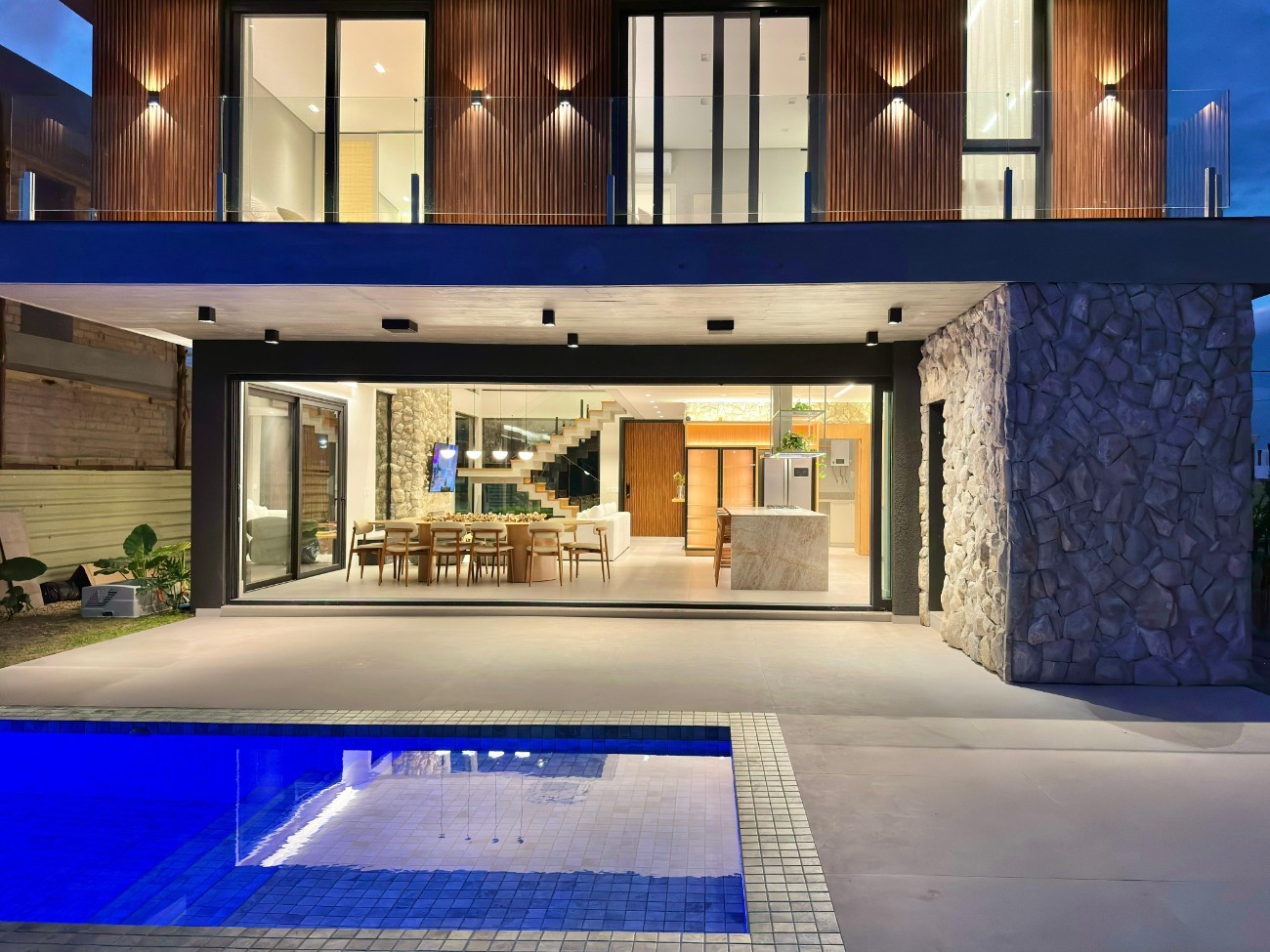 O imóvel conta com 5 suítes, sendo uma delas térrea, ideal para oferecer acessibilidade e praticidade. A área social é totalmente integrada, criando ambientes amplos e perfeitos para convívio. O destaque fica por conta da piscina com deck frontal ao lago, proporcionando um cenário deslumbrante e exclusivo.
