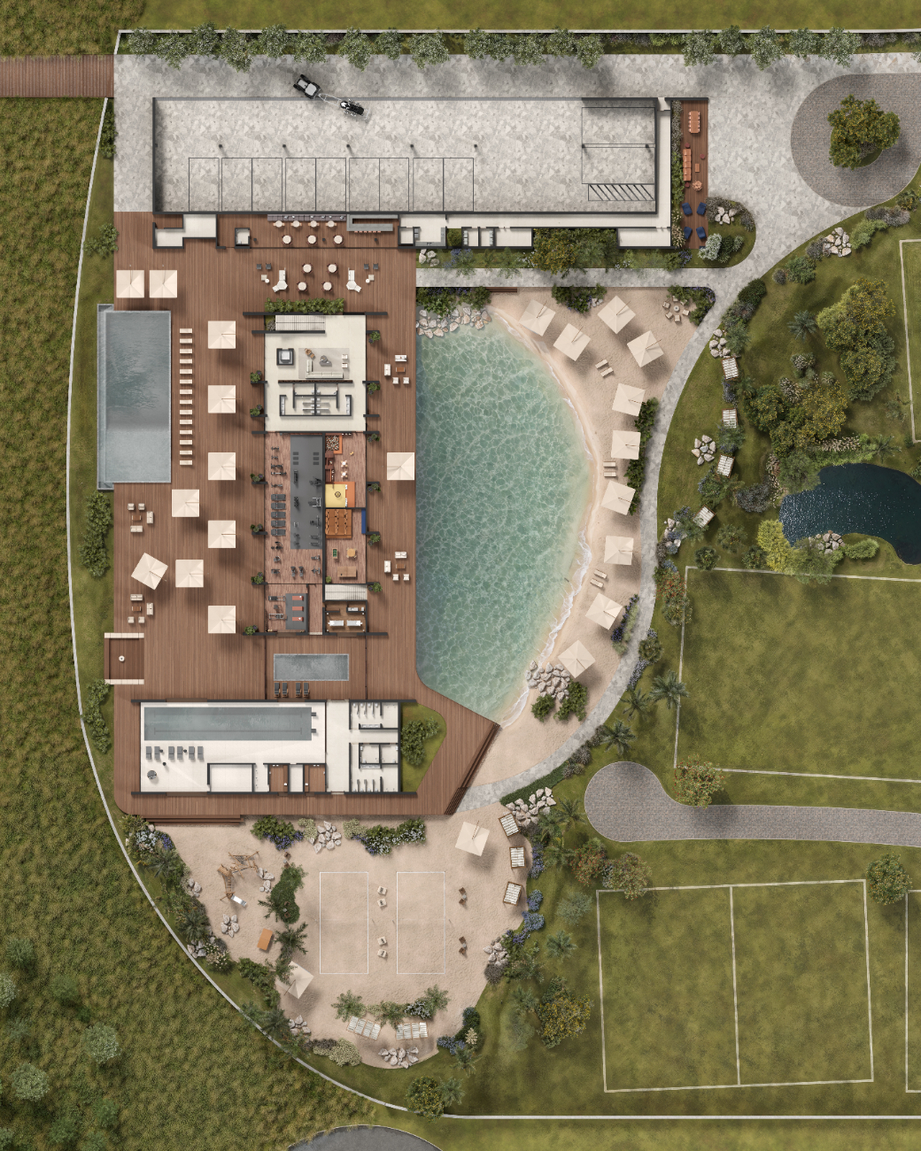 O projeto conta com um Wellness Club completo, complexo esportivo, praia artificial de águas cristalinas, piscina panorâmica com borda infinita voltada para o pôr do sol, spa, academia, espaços gourmet e estrutura náutica com trapiche e garagem para embarcações. Tudo foi pensado para transformar o bem-estar em rotina e proporcionar uma vida mais tranquila, sofisticada e conectada à natureza.