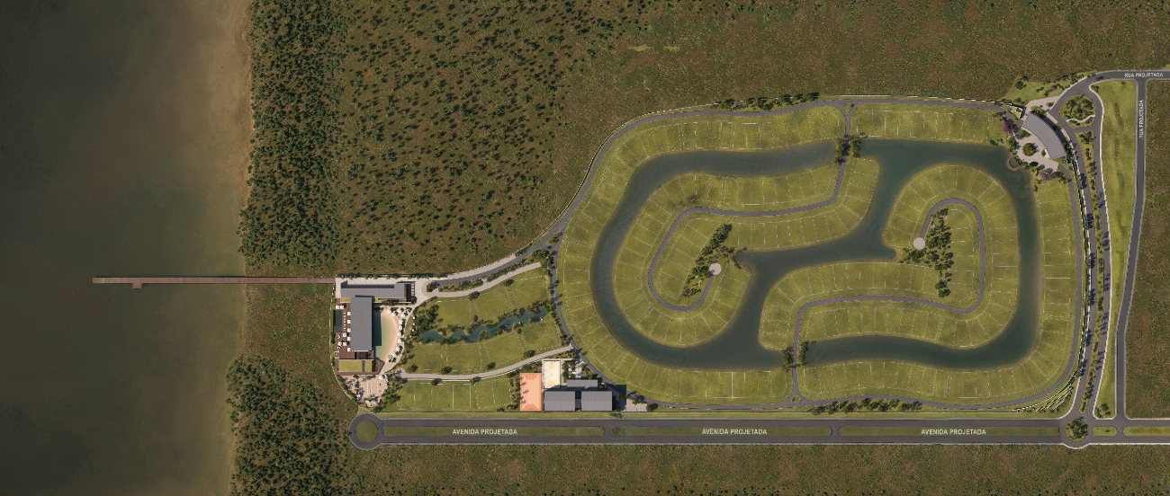 Com apenas 218 lotes que variam de 450 m² a 1.200 m² e baixa taxa de ocupação, o condomínio privilegia espaços amplos, privacidade e vistas privilegiadas para a lagoa, sendo que a maioria dos terrenos é beira-lago.