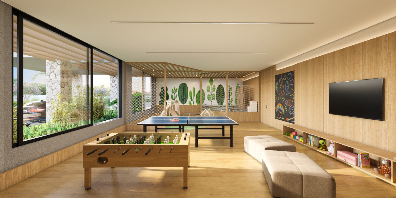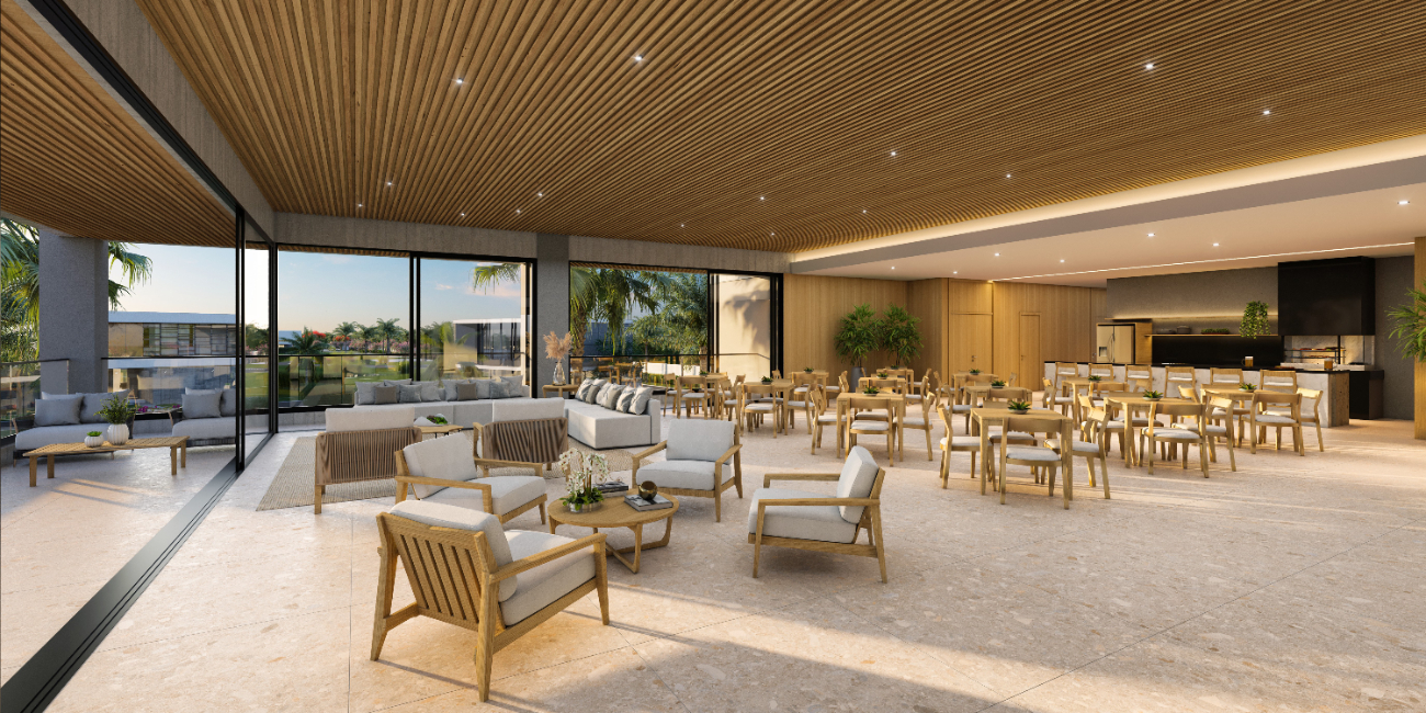 Para os amantes de esportes e atividades ao ar livre, o condomínio oferece duas quadras de tênis cobertas, sete quadras de beach tennis (sendo duas cobertas), quadra de padel e quadra de futebol society gramada, além de espaços projetados para convivência e lazer.