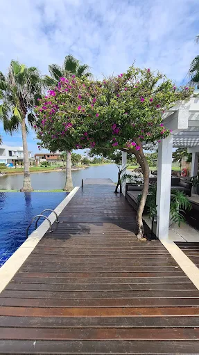 O paisagismo é um espetáculo à parte. O projeto contempla um conjunto de lagos interligados por quedas d’água com pedras, decks para contemplação, caminhos integrados à vegetação nativa e decorativa, exuberantes palmeiras, coqueiros e flores que acompanham os muros. Tudo isso proporciona uma sensação de tranquilidade e beleza natural em todas as áreas do condomínio.